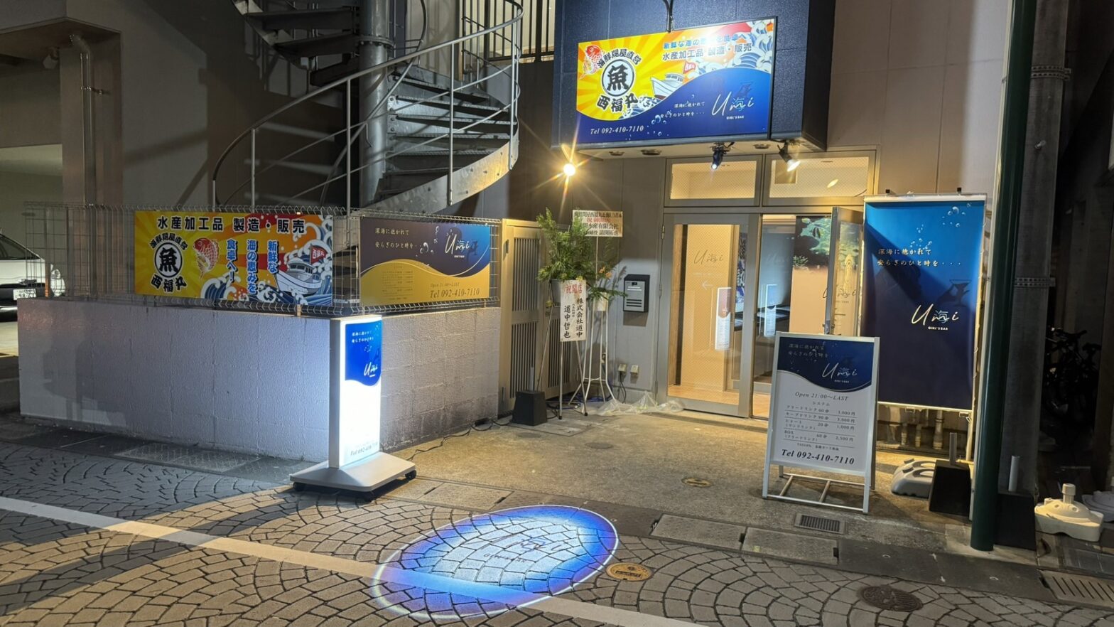 株式会社メディエート様から「海鮮問屋直営 西福丸」と「Girl’s bar 海 ~Umi~」の看板とロールスクリーン、スタンド看板、ロゴライトをご注文いただきました。どちらも10/7に新規オープンしており、西鉄香椎駅徒歩2分の新築ビル1階にございます。