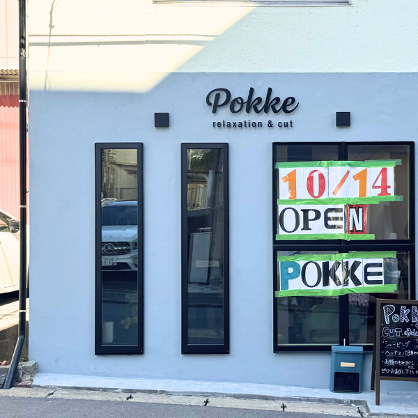 リラクゼーション&カットサロン Pokke様 のステンレス切文字サインを製作施工させていただきました!✨10/14(火)グランドオープンです🎉🎊