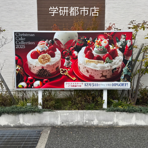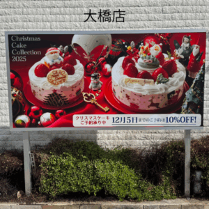 毎年恒例、パティスリーイチリュウ様(大橋店・学研都市店)の看板を「クリスマスケーキご予約承り中」仕様にチェンジしました🎅🎄⛄看板のケーキがもう…🤤 たまらなく美味しそうで、眺めているだけでクリスマス気分が高まります!ちなみに、いちごのショートケーキがクリスマスの定番なのは、日本独自の文化だそう💡イチリュウ様のケーキは、甘すぎず、胃もたれ知らずで本当に絶品なんです🎂この美味しさ、世界中の方に味わってほしい😭✨